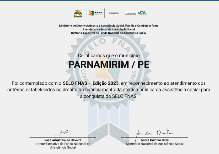 Parnamirim passa a figurar entre os municípios brasileiros reconhecidos pela excelência na gestão da assistência social ao conquistar o Selo FNAS 2025, certificação concedida pelo Fundo Nacional de Assistência Social.